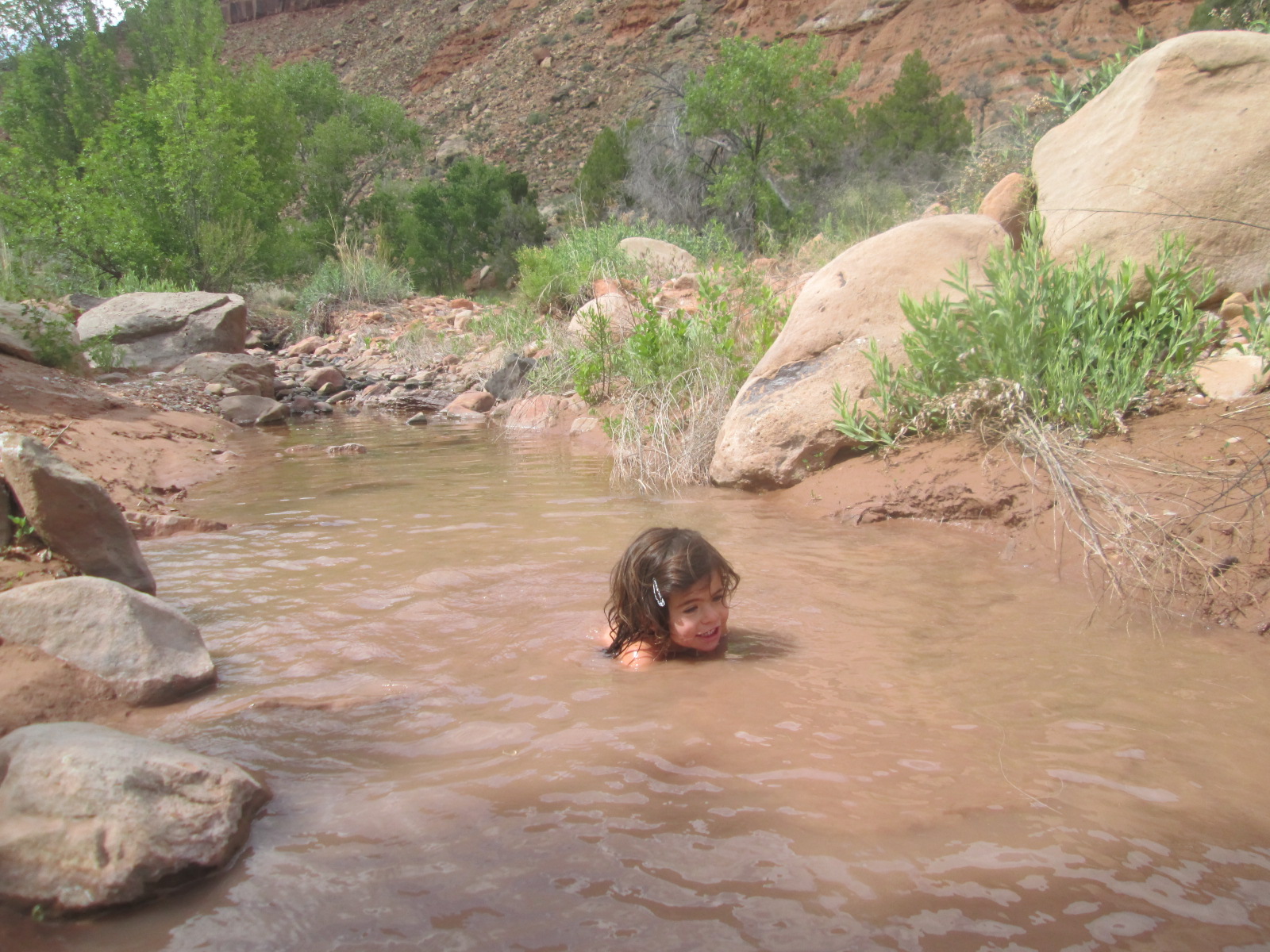 “We had a big pool with a waterfall running into it. It had big tadpoles in it. I mean big. Jacob and I raced as fast as we could through the creek and sometimes I won. The sand felt so good on our feet. At the next camp we made a Giant dam in the creek, it was really awesome. We could actually walk on the dam and the next day tadpoles started coming to our dam.”