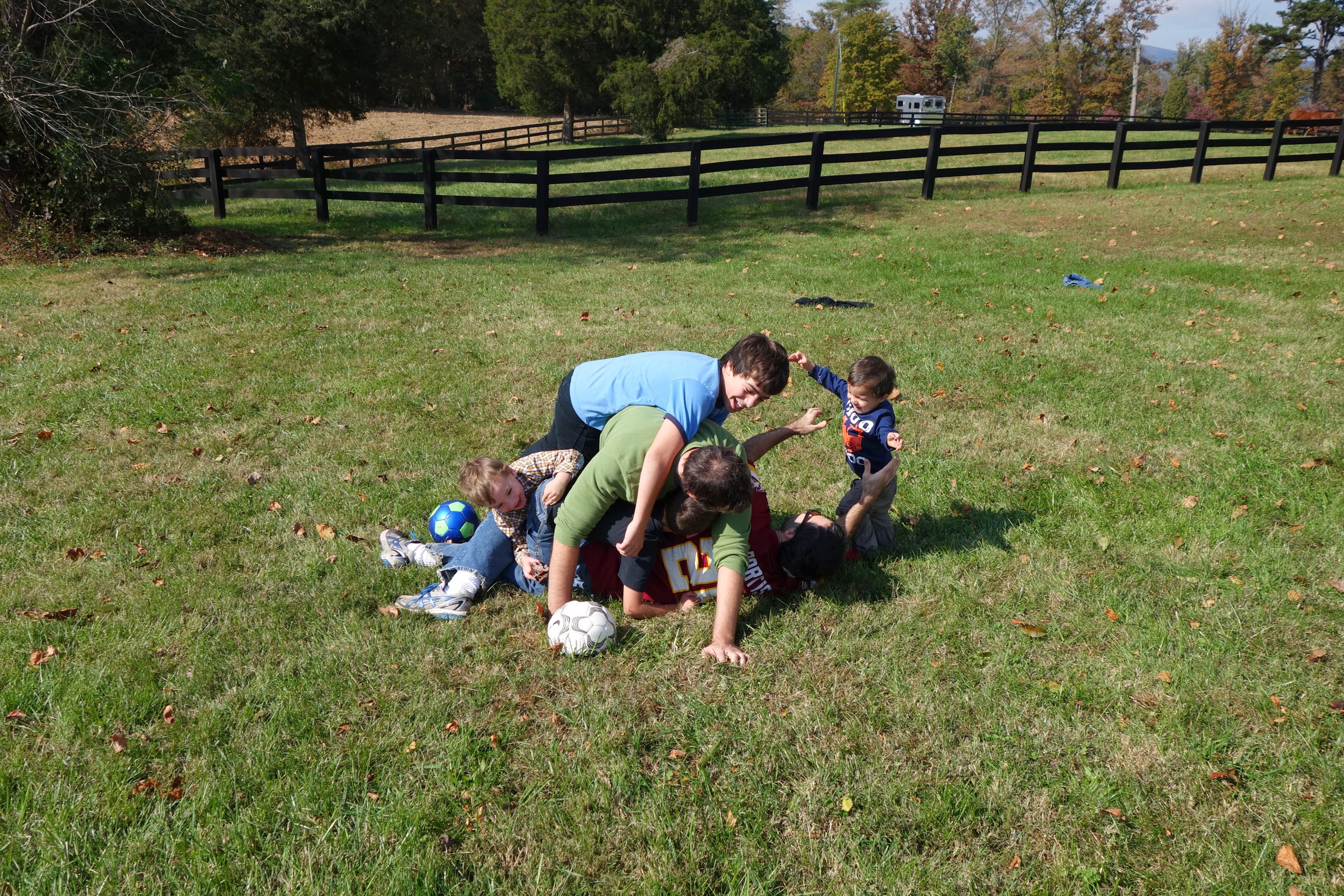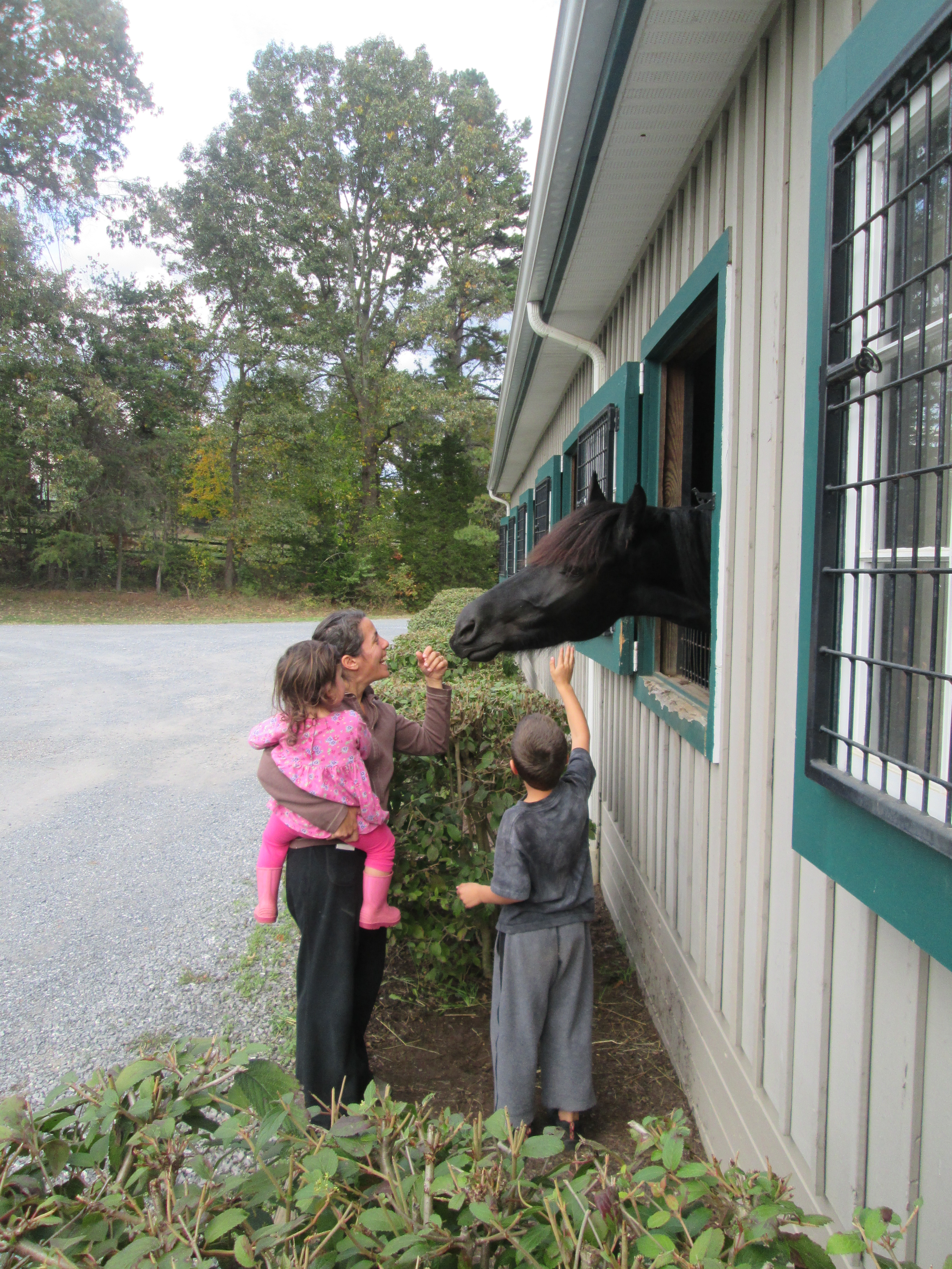 Back in the Blue Ridge the forests were erupting with yellow, red, purple and orange – extraordinary yet so ordinary. Ila’s Birthday was quiet and humble as it should be for a two year old. We visited her “horsey friends” many times that day, played with her stroller and her brothers and ate fruit. We saved the 27th, Jacob’s Birthday for the Ila and Jacob party. It took place at my brother’s farm house. We made Sushi, played soccer and walked the farm checking out the horses.
