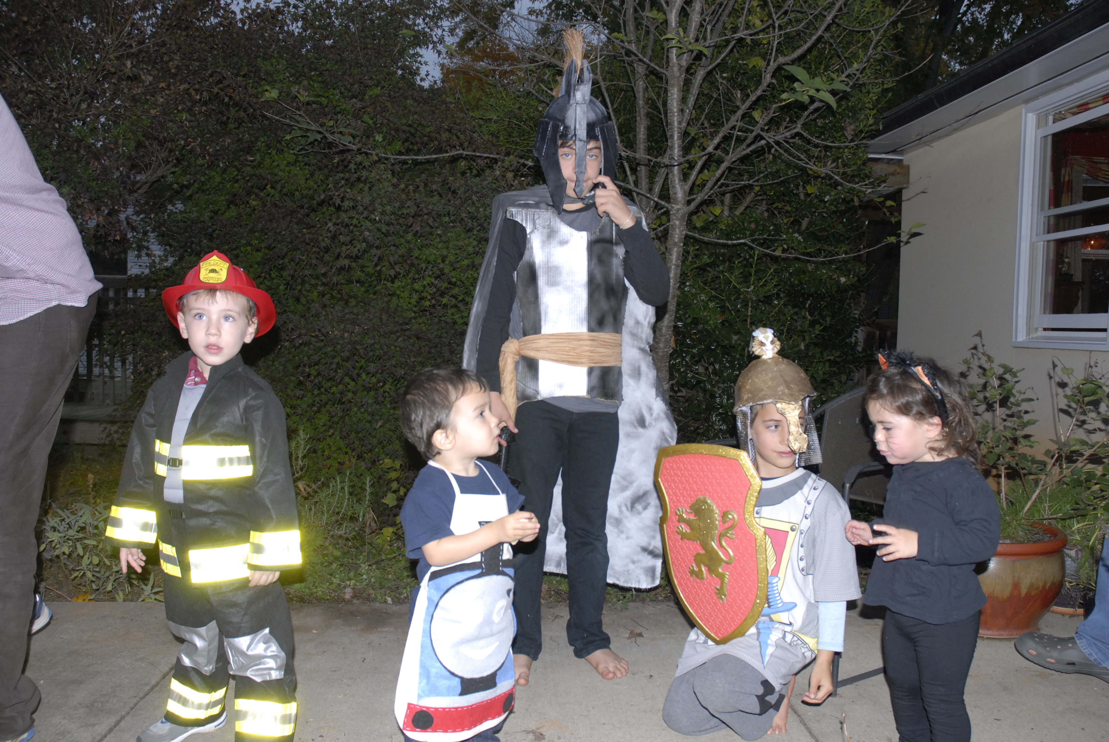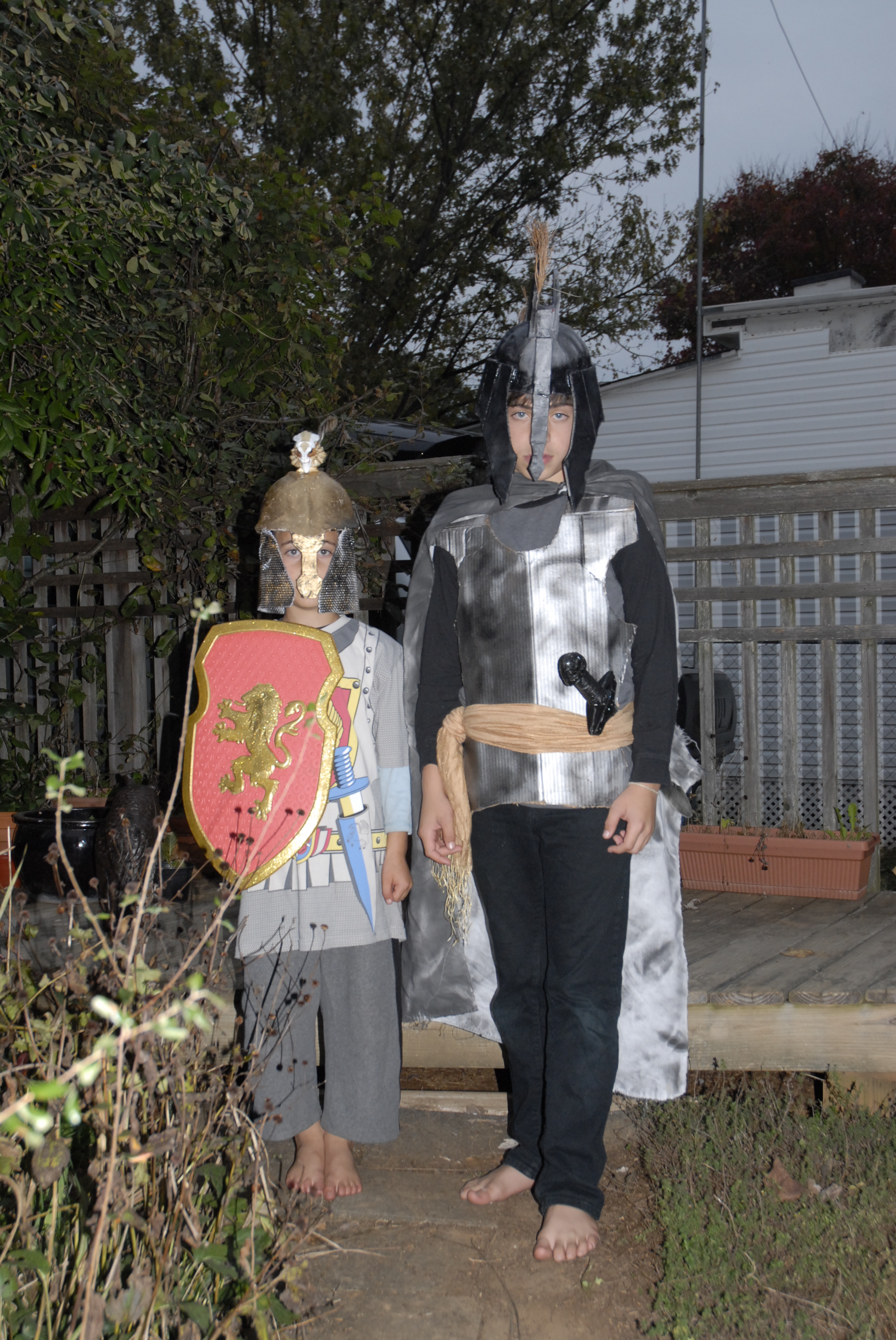 Jacob and Elias love coming here as well. It’s a level of mystery and excitement they don’t get anywhere else. They LOVE going to my parent’s art studio and diving whole heartily into projects. Growing up we would always take Halloween costumes very seriously and I have always wanted my kids to enjoy that with my dad. Jacob took on the task of designing and constructing the battle armor of a dead Trojan Warrior while Elias, also preparing for battle built his far more glamorous a knight in shining armor.